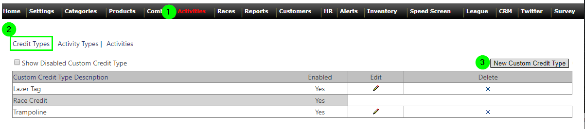 Custom Credits & Activities Setup