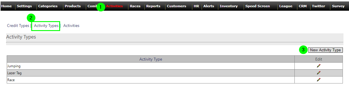 Click the Activity Types link. (By default, Race should be the only one listed.)