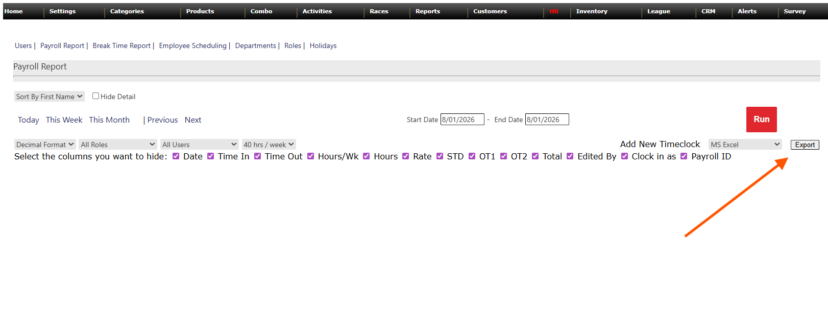 Step 2: Navigate to the HR tab and select Payroll Report.