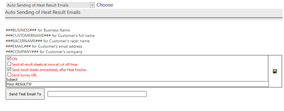 - In the check boxes make sure ON is checked and Send Resul sheets immediately after Heat Finishes