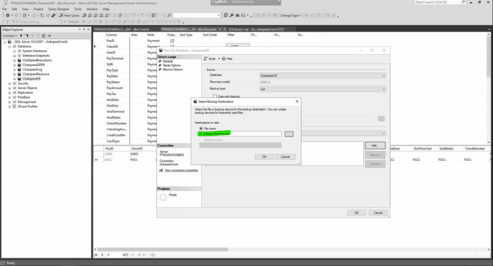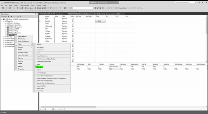 - Right click on the database you which to back up an go to Tasks > Back Up...