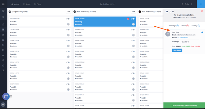 You can locate the booking directly on the calendar, or use the search bar on the left-hand side by entering the customer’s booking ID.