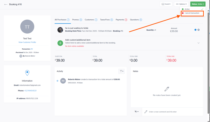 Click the status and select Cancel Transaction.
