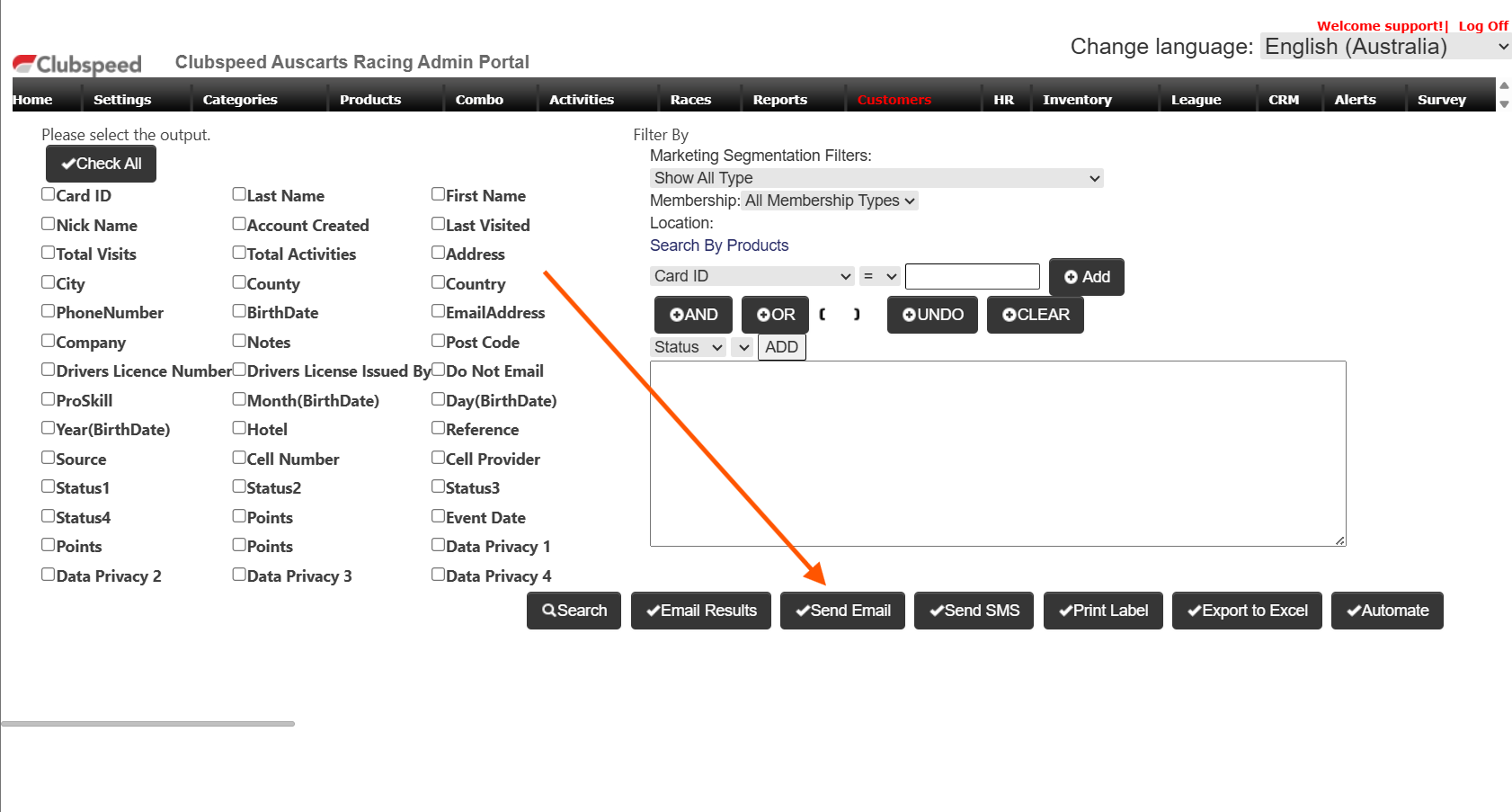 Navigate to the customers SP_admin portal> go to the Customers tab> click on send email (this will take you to the marketing email templates)