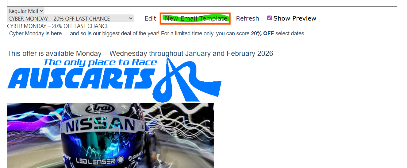 Once you have opened the template option, please navigate to new template to paste the template the customer has sent you, IMPORTANT!!! after creating a new template alway add ##UNSUBSCRIBELINK## this is the unsubscribe link for the guest.