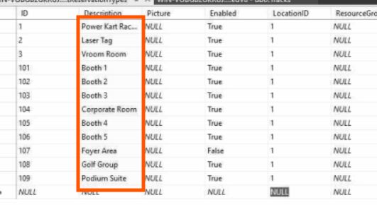Right-click on dbo.eventreservationtypes and select Edit Top 200 Rows (or Edit Top 2000 Rows, depending on your setup). - Find and Rename the Rooms