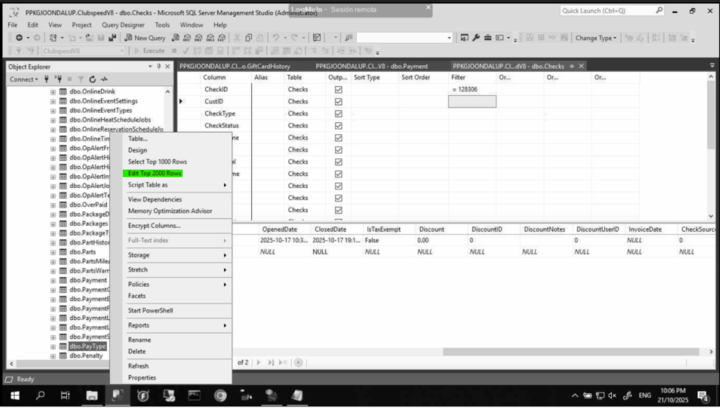 Procedure> Step number 1 open SQL, hit the + button on databases, after that click the + button in ClubspeedV8 and look for dbo.Paytype