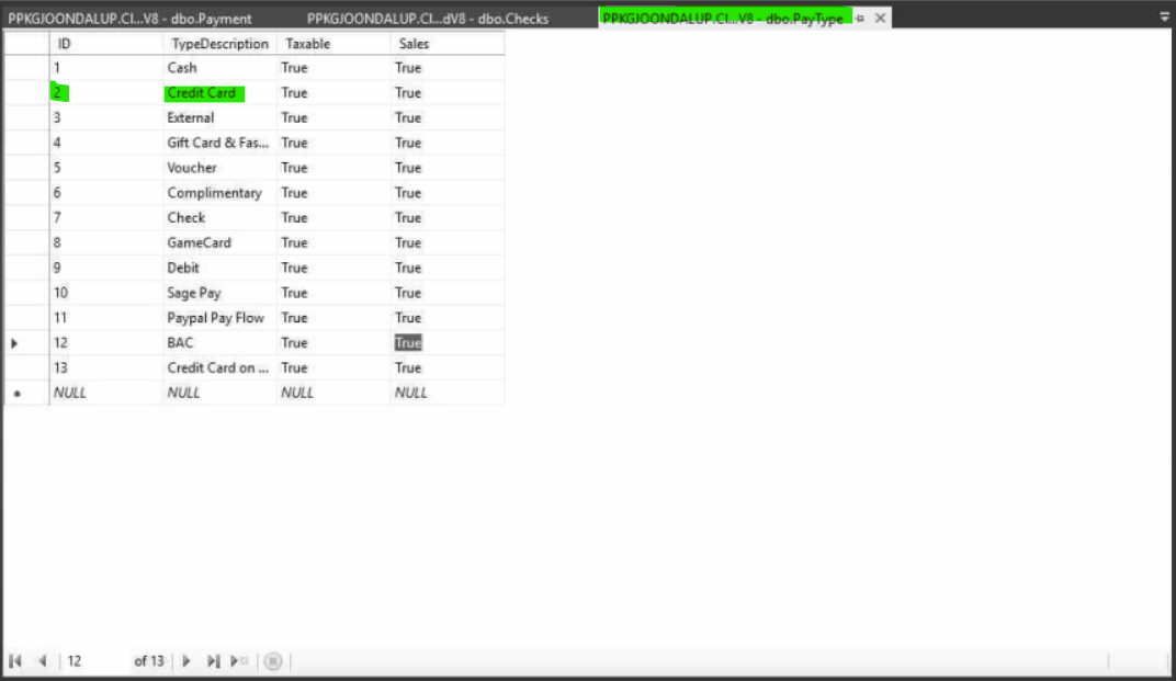 And you are done, there you will see all the pay types available in the database, and you can identify them with the ID. So if a pay type shows number 2, in this example on the image, it would be a credit card payment.